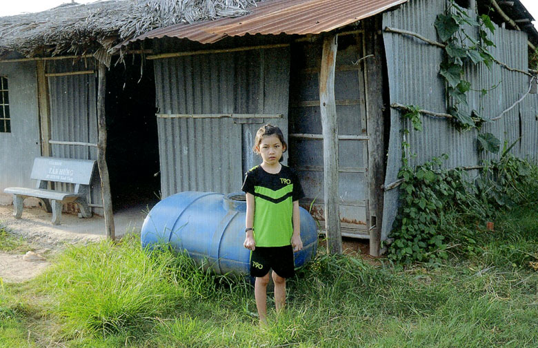 Gia đình Ngân có 4 thành viên, đang sống trong căn nhà lá đã thấm dột nhiều tại ấp An Điền, là gia đình có hoàn cảnh sống khó khăn.