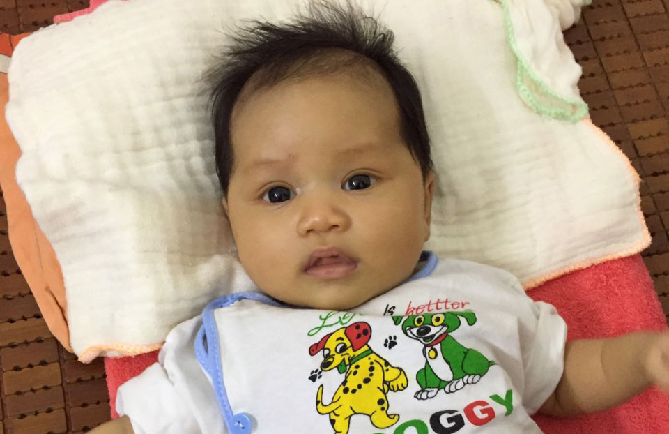 Lúc 5 tháng tuổi, Thương có biểu hiện ít bú, đêm quấy khóc, khó thở, đưa vào bệnh viện khám, bác sĩ chẩn đoán em bị bệnh tim bẩm sinh.