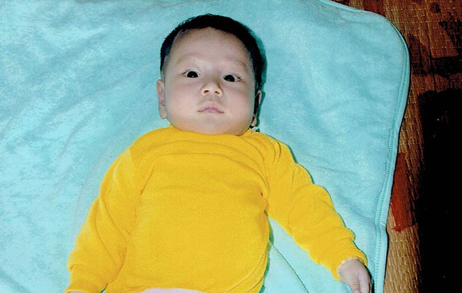 Khi Anh Quân gần 3 tháng tuổi, đi tiêm phòng định kỳ, về nhà bị sốt cao nhiều ngày không hết, gia đình đưa em nhập viện và phát hiện bị bệnh tim bẩm sinh.