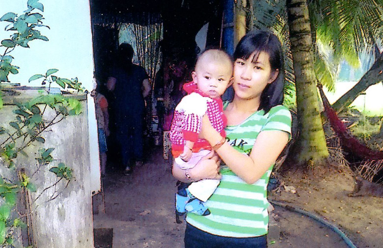 Em Khoa cùng mẹ và bà ngoại