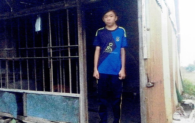 Cha mất sớm, mẹ bị bệnh, Quý đang sống với ông bà ngoại và em trai sinh năm 2004 trong căn nàh được chắp nối lại từ những tấm ván ép cũ, lá và tôn.