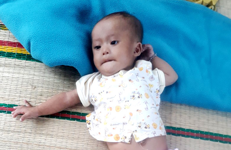 Mới có mấy tháng tuổi mà phải gánh nhiều căn bệnh như thế thì tội nghiệp quá! A Bốt thường xuyên bị sốt ho, khó thở, tím tái. Buổi tối, bé không ngủ được, cứ quấy khóc nên nhiều đêm cha mẹ thay phiên nhau bế suốt đêm.