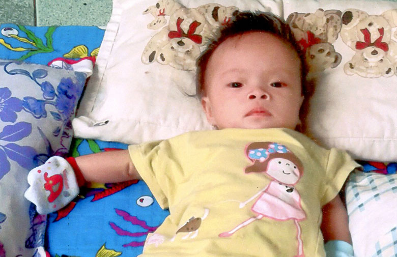 Khi được 1 tháng tuổi, Thủy Dung có biểu hiện bị vàng da, gia đình đưa em vào Nhi đồng 2, bác sĩ cho biết em bị bệnh tim bẩm sinh.