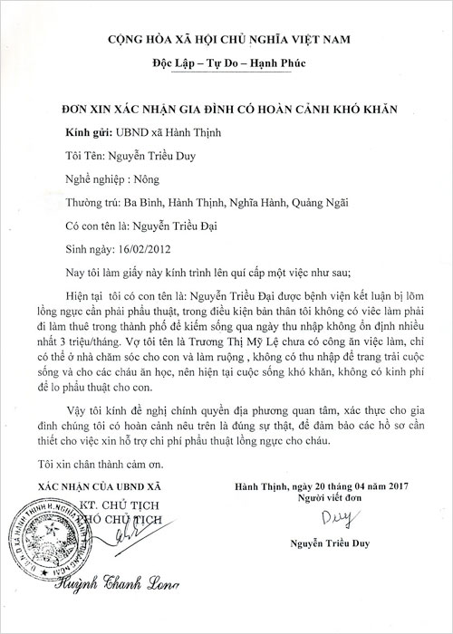 Em Đại bị lõm ngực