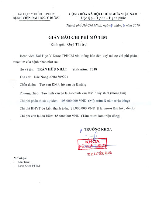 Em Nhật bị hở van ba lá nặng