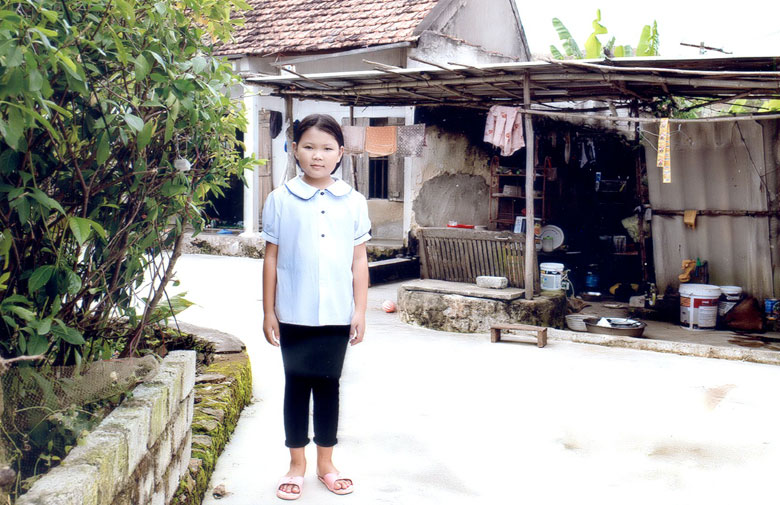 Ngọc Trâm, hai chị gái cùng ba mẹ đang sống trong căn nhà nhỏ cấp 4 tại xóm Quỳnh Mỹ, là hộ gia đình có hoàn cảnh khó khăn.