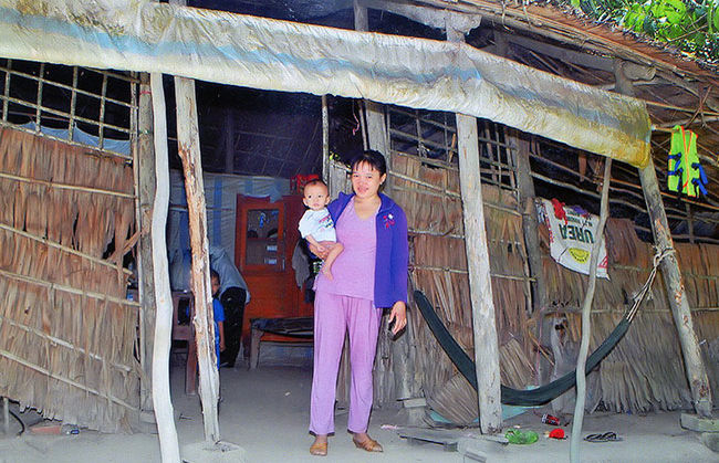 Trước đây, anh Nhơn cũng có mảnh đất nhỏ để trồng trọt cây trái, nhưng gia đình quá khó khăn, vay mượn nhiều nơi, anh Nhơn đã phải bán đất trả nợ. Con trai lớn của anh chị chỉ vừa học lớp 1. Số tiền anh Nhơn kiếm được còn không đủ để trang trải sinh hoạt phí cuả 4 người. Căn nhà đang ở thì xuống cấp nghiêm trọng, dột nát khắp nơi, anh chị cũng không có tiền sửa chữa dù luôn bất an mỗi khi mùa gió bão bắt đầu.