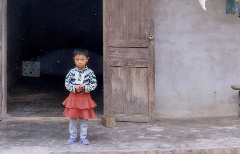 Em Kim và mẹ trước ngôi nhà của gia đình