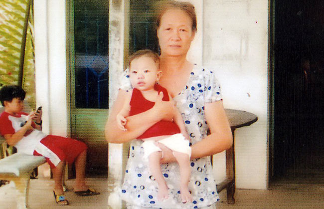 Em Đạt và mẹ (ở giữa) cùng ông bà ngoại