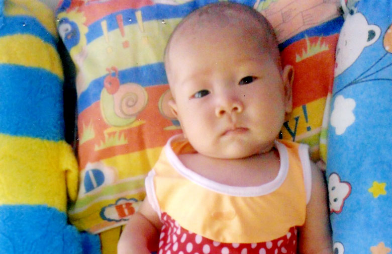 Hiện tại sức khỏe của Phương vẫn còn rất yếu, chỉ cân nặng 5kg, ít bú do hay bị sốt cao và viêm phổi, thỉnh thoảng em phải nhập viện thở máy vì nhịp thở không đều.