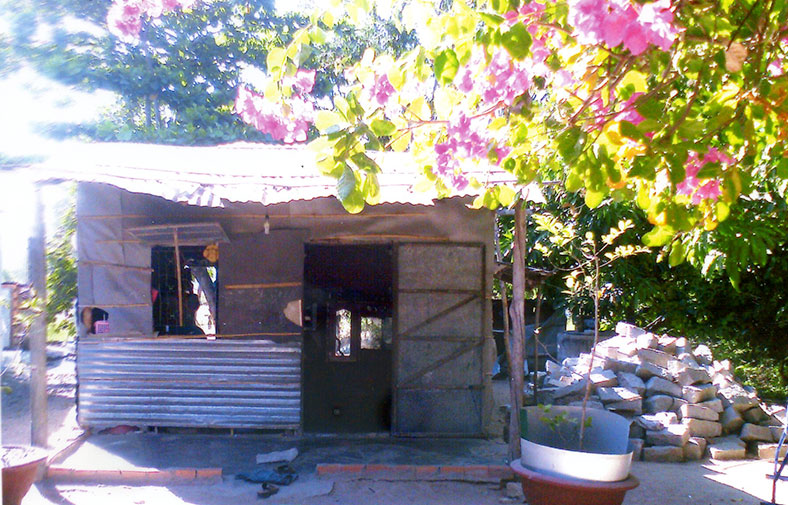 Căn nhà gia đình anh Huy đang sinh sống đã mục nát. Tường, mái nhà được làm bằng những tấm tôn và chèn thêm những tấm bạc cũ. Qua thời gian chịu đựng nắng mưa nay đã mục, rách và thấm dột nhiều nơi. Không có một nơi ăn ở an toàn, vợ chồng anh Huy lúc nào cũng sống trong tâm trạng nơm nớp lo sợ mỗi khi vào mùa mưa bão.