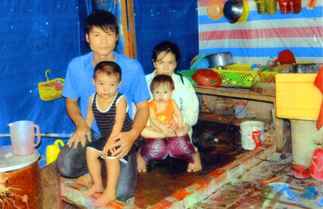 Cả nhà anh Điền trước ngôi nhà của gia đình