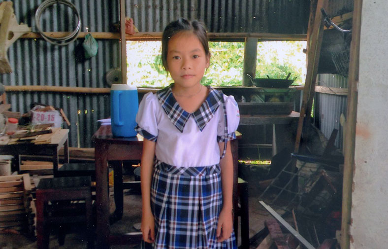 Gia đình Quỳnh Như có 4 người, đang sống trong căn nhà mái lá cũ tại ấp Rạch Đập. Là gia đình có hoàn cảnh khó khăn, vợ chồng anh Hoàng chủ yếu làm ruộng, thu nhập trung bằng hàng tháng khoảng 1.500.000đ.