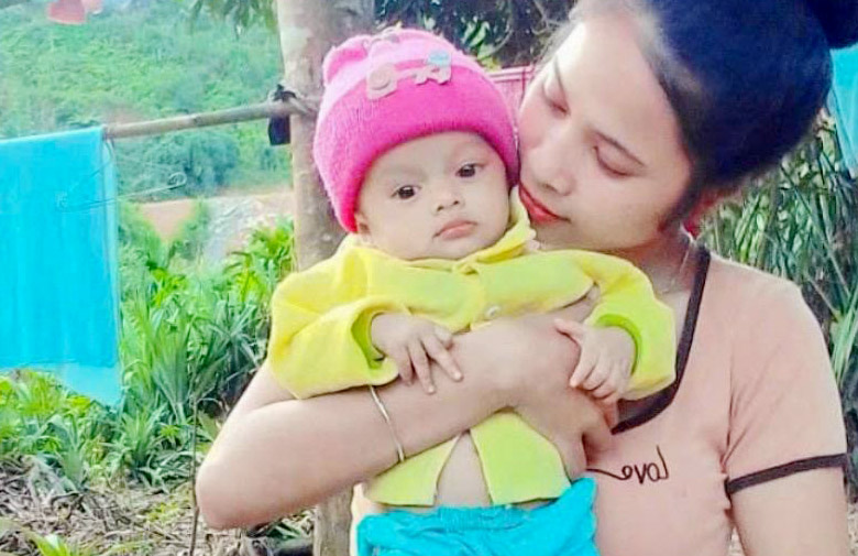 Bé Đinh Thị Mỹ Duyên sinh ngày 31/07/2023, là con của chị Đinh Thị Sinh, hiện ngụ tại xã Sơn Liên, huyện Sơn Tây, tỉnh Quảng Ngãi.
