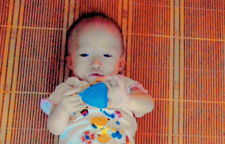 Ngay khi chào đời, bé An đã được phát hiện bị bệnh tim bẩm sinh, chuyển qua Viện nhi trung ương, truyền dịch, thở oxy. Từ đó cho đến nay em liên tục nằm viện điều trị, dùng thuốc kháng sinh và được chăm sóc đặc biệt. Tuổi thơ của An gần như gắn chặt với bệnh viện.