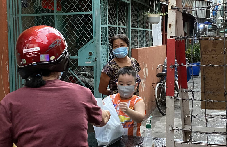 Đội tình nguyện viên Sosmap.net đi trao quà cho người dân