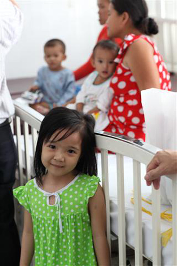 Đại diện gia đình ông Hồ Vân Hải đi thăm các bệnh nhi ở Viện tim Tâm Đức